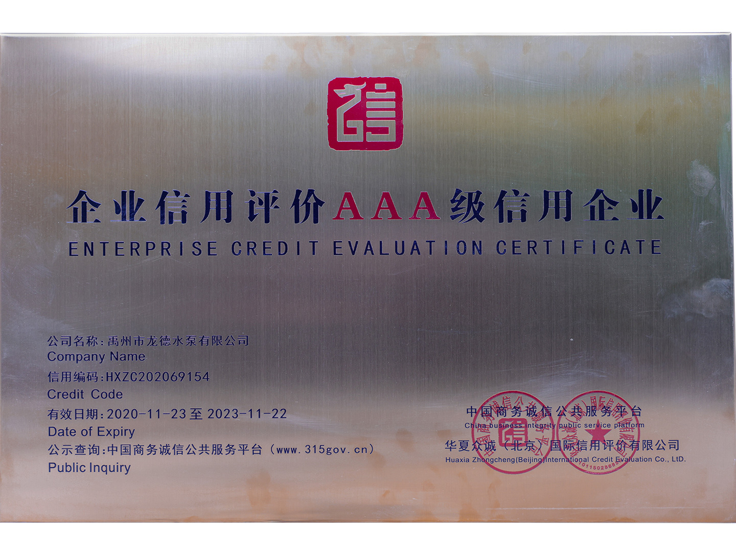 企業(yè)信用評價AAA級信用企業(yè)